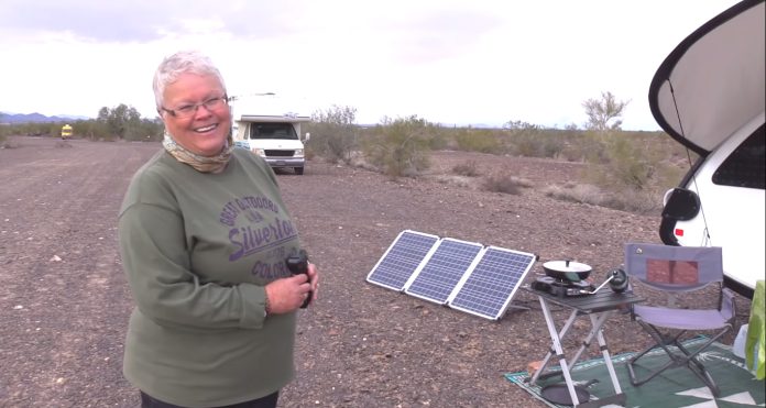 Sharon har også et klimaanlegg, en flatskjerm TV og CD- og DVD-spiller. Men hun forteller at hun er så lite som mulig inne i campingvognen. Så lenge været tillater det, er hun ute i naturen. Hun lager også helst maten sin ute.